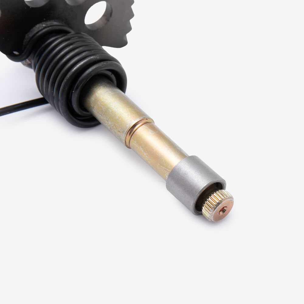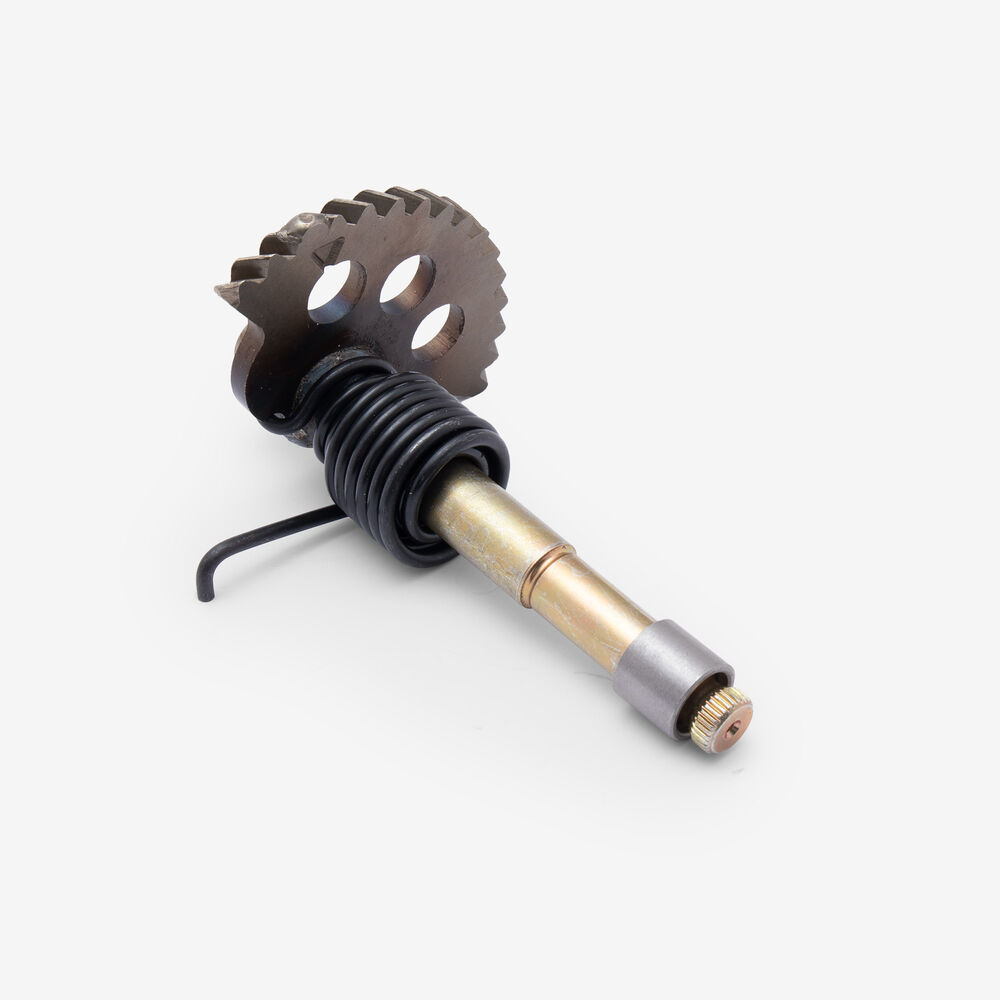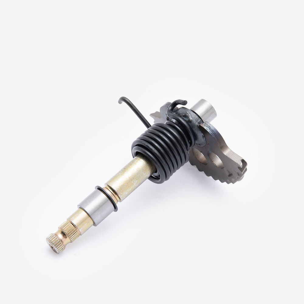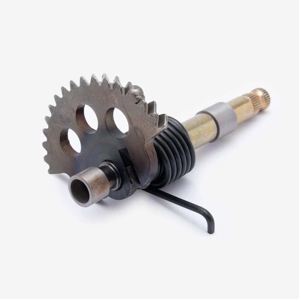 The kick start shaft on a motorcycle is a component that transfers the force from the kick starter lever to the engine’s starting mechanism. It facilitates the manual starting of the engine by converting the rider's kick into rotational motion.