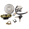Lock sets on a motorcycle are collections of locking mechanisms designed to secure various parts of the bike, such as the ignition, steering, fuel cap, and storage compartments. These sets typically include a matching set of keys and are engineered to provide security and deter theft. They are constructed from durable materials to withstand tampering and environmental conditions, ensuring reliable protection for the motorcycle.