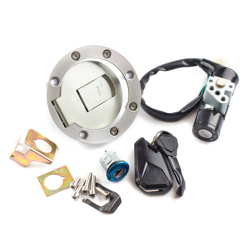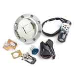 Lock sets on a motorcycle are collections of locking mechanisms designed to secure various parts of the bike, such as the ignition, steering, fuel cap, and storage compartments. These sets typically include a matching set of keys and are engineered to provide security and deter theft. They are constructed from durable materials to withstand tampering and environmental conditions, ensuring reliable protection for the motorcycle.