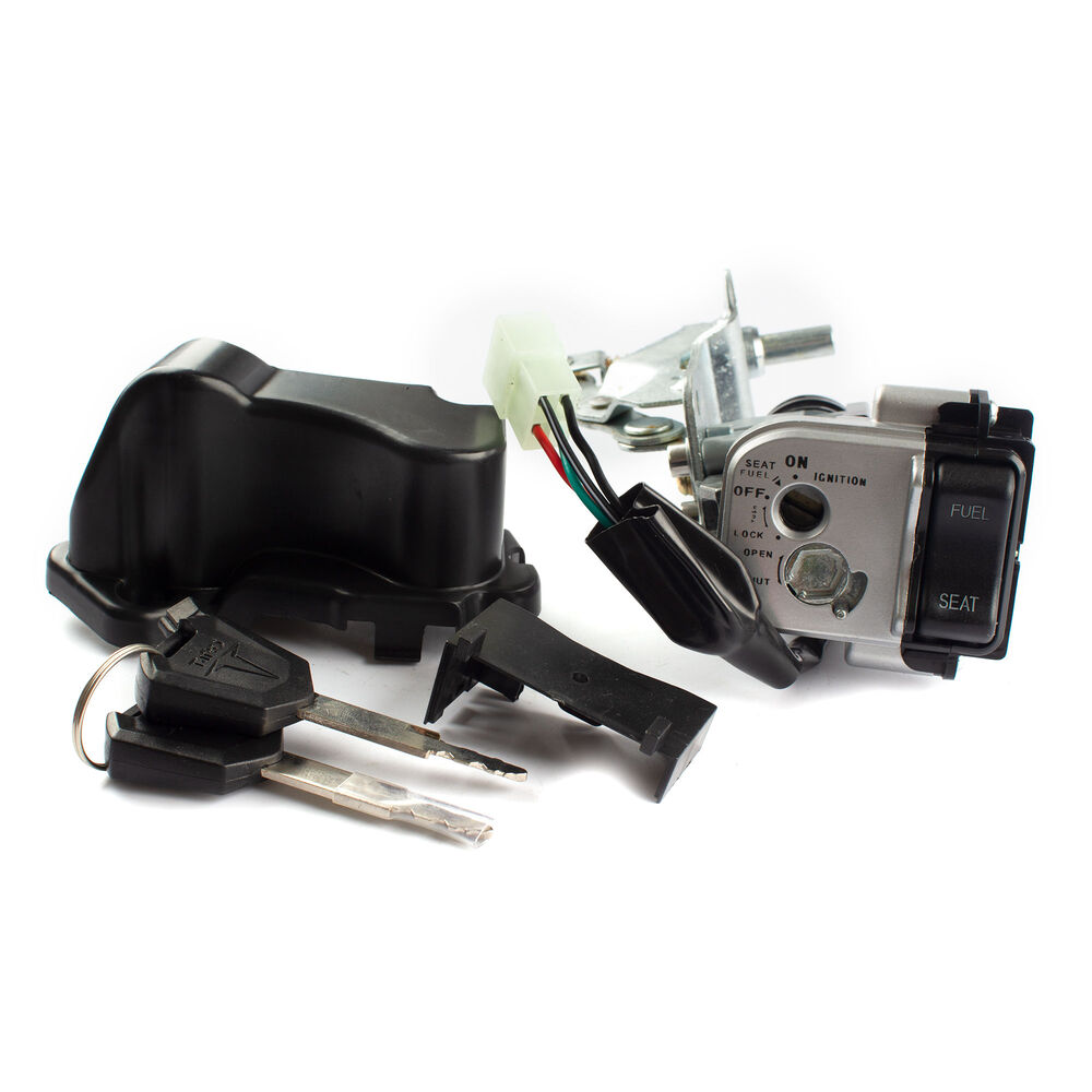 Lock sets on a motorcycle are collections of locking mechanisms designed to secure various parts of the bike, such as the ignition, steering, fuel cap, and storage compartments. These sets typically include a matching set of keys and are engineered to provide security and deter theft. They are constructed from durable materials to withstand tampering and environmental conditions, ensuring reliable protection for the motorcycle.