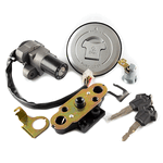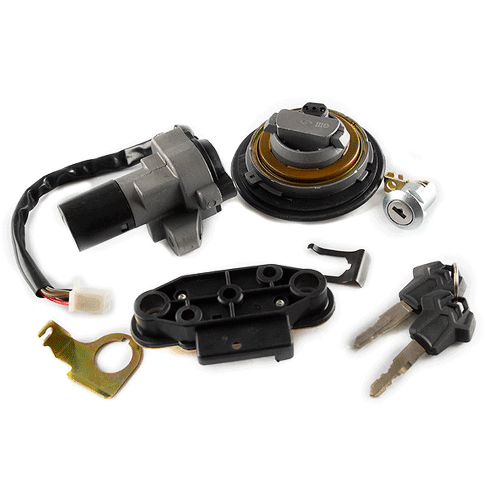 Lock sets on a motorcycle are collections of locking mechanisms designed to secure various parts of the bike, such as the ignition, steering, fuel cap, and storage compartments. These sets typically include a matching set of keys and are engineered to provide security and deter theft. They are constructed from durable materials to withstand tampering and environmental conditions, ensuring reliable protection for the motorcycle.