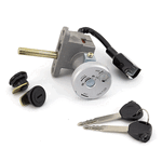 Lock sets on a motorcycle are collections of locking mechanisms designed to secure various parts of the bike, such as the ignition, steering, fuel cap, and storage compartments. These sets typically include a matching set of keys and are engineered to provide security and deter theft. They are constructed from durable materials to withstand tampering and environmental conditions, ensuring reliable protection for the motorcycle.