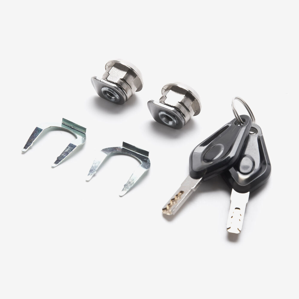 Lock sets on a motorcycle are collections of locking mechanisms designed to secure various parts of the bike, such as the ignition, steering, fuel cap, and storage compartments. These sets typically include a matching set of keys and are engineered to provide security and deter theft. They are constructed from durable materials to withstand tampering and environmental conditions, ensuring reliable protection for the motorcycle.