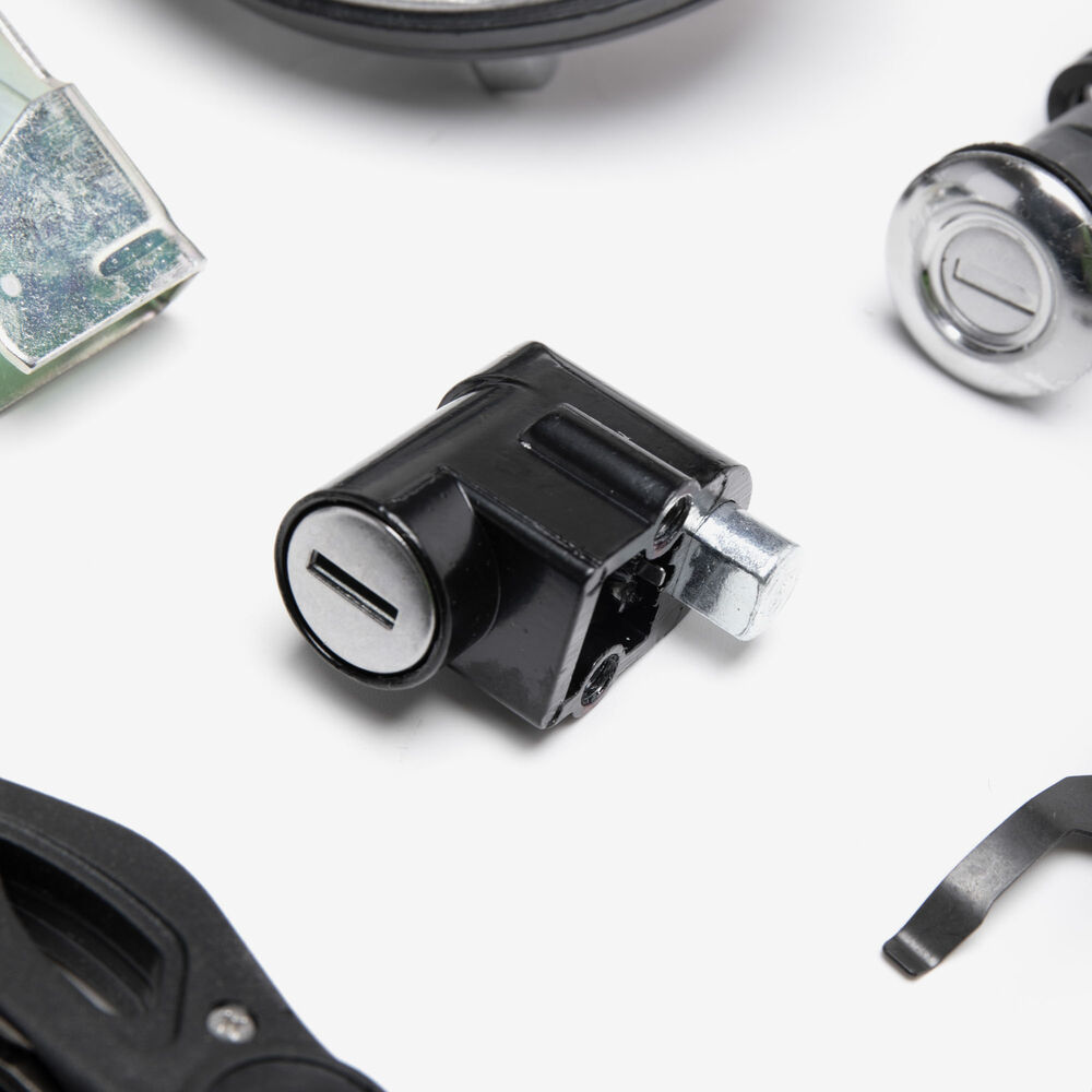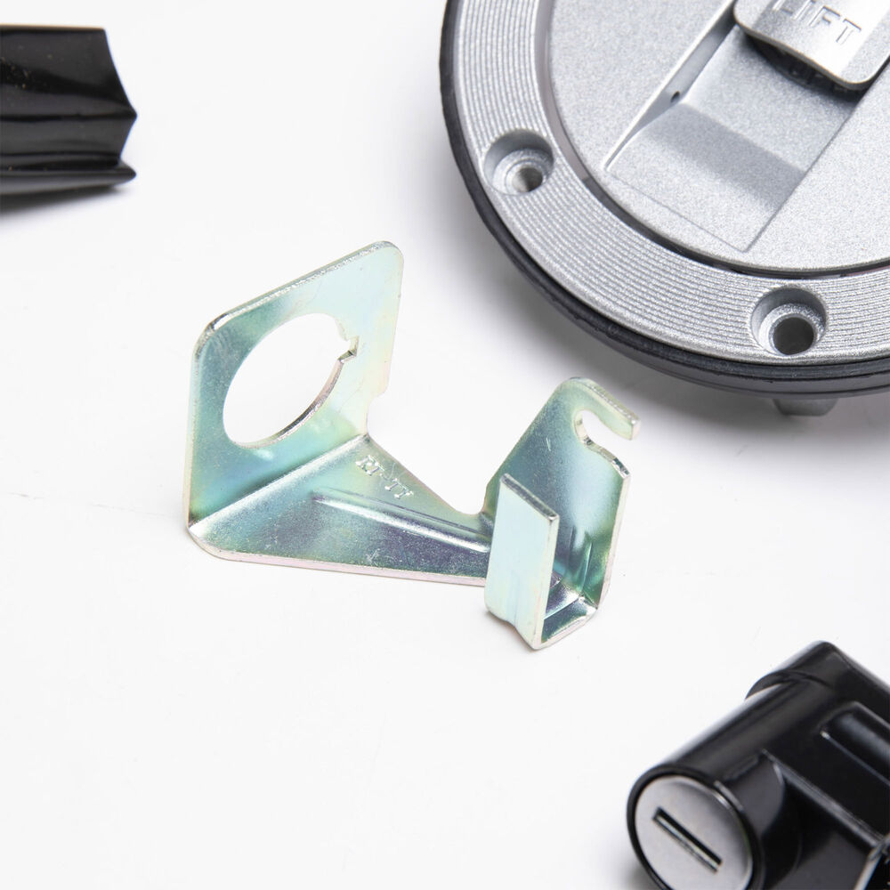 Lock sets on a motorcycle are collections of locking mechanisms designed to secure various parts of the bike, such as the ignition, steering, fuel cap, and storage compartments. These sets typically include a matching set of keys and are engineered to provide security and deter theft. They are constructed from durable materials to withstand tampering and environmental conditions, ensuring reliable protection for the motorcycle.