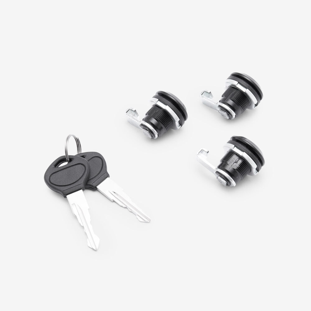 Lock sets on a motorcycle are collections of locking mechanisms designed to secure various parts of the bike, such as the ignition, steering, fuel cap, and storage compartments. These sets typically include a matching set of keys and are engineered to provide security and deter theft. They are constructed from durable materials to withstand tampering and environmental conditions, ensuring reliable protection for the motorcycle.