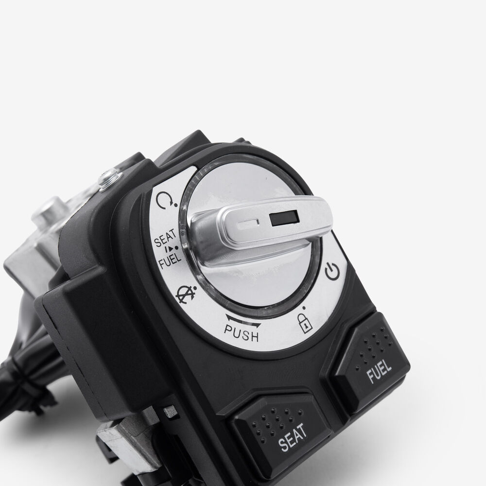 Lock sets on a motorcycle are collections of locking mechanisms designed to secure various parts of the bike, such as the ignition, steering, fuel cap, and storage compartments. These sets typically include a matching set of keys and are engineered to provide security and deter theft. They are constructed from durable materials to withstand tampering and environmental conditions, ensuring reliable protection for the motorcycle.