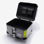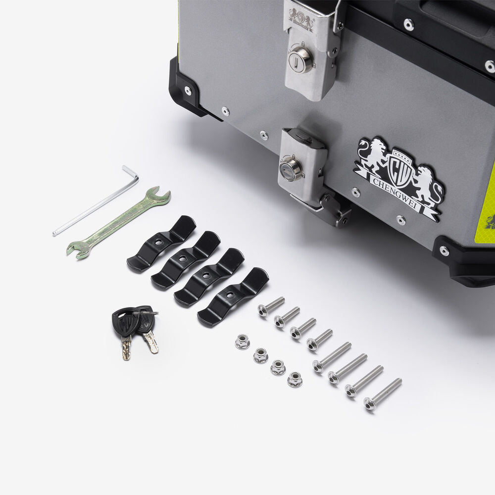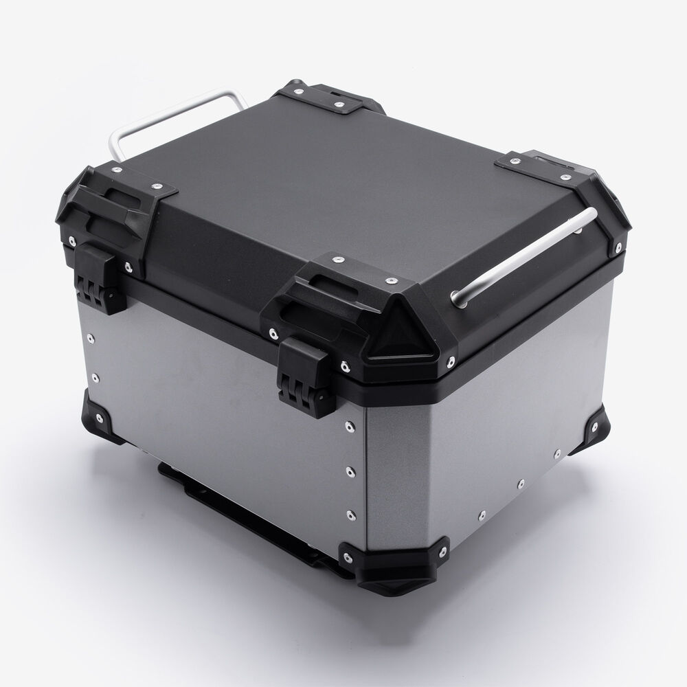 A luggage box on a motorcycle is a storage container used to carry personal items and gear securely. It is typically mounted on the rear or sides of the bike and offers a convenient and weatherproof solution for transporting belongings. Luggage boxes can be made from various materials such as plastic, metal, or fiberglass, and are designed to provide easy access and protection from the elements.
