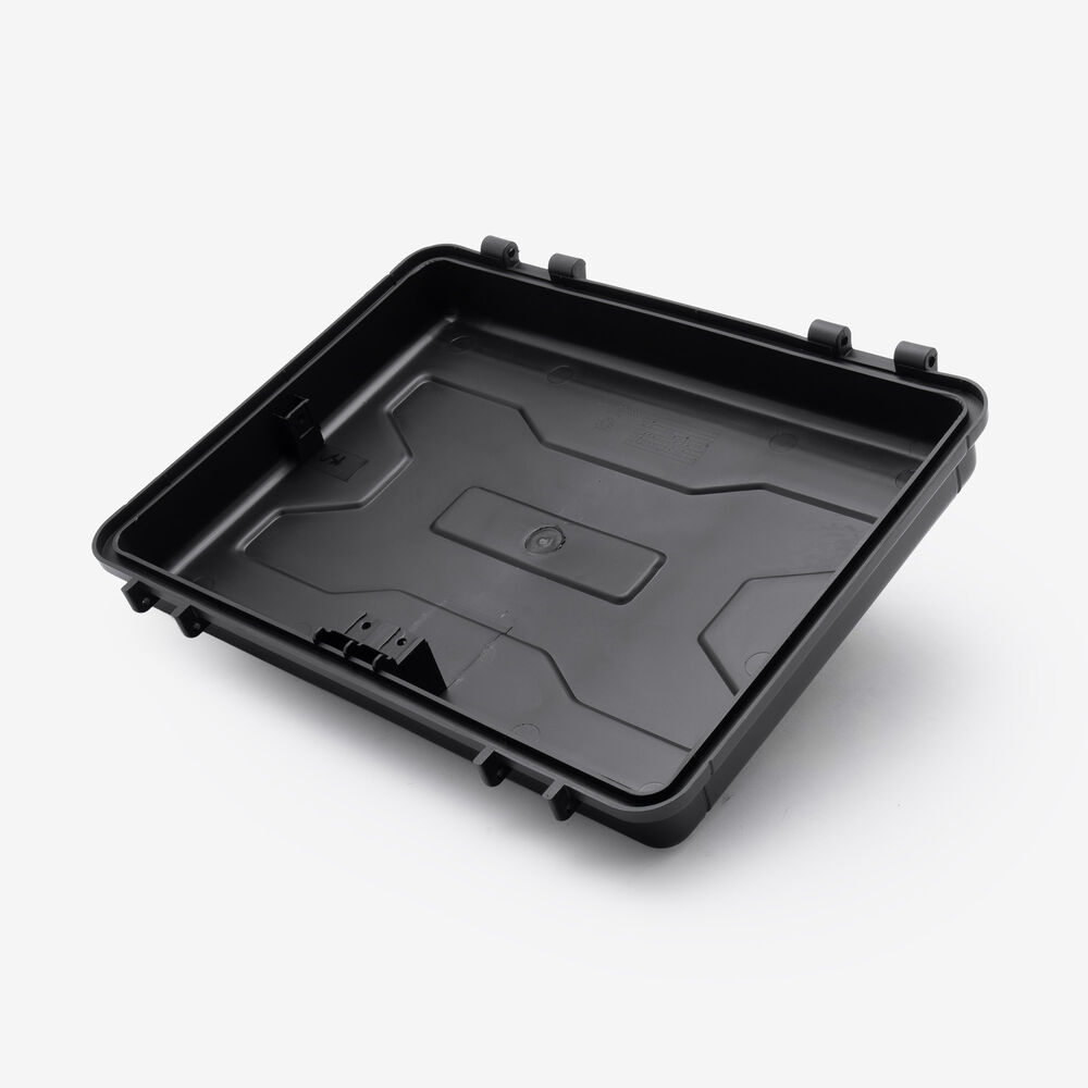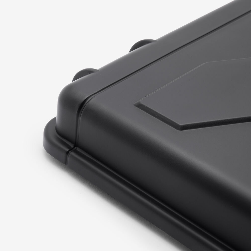A luggage box lid on a motorcycle is the top cover of the luggage box or top case, designed to protect the contents inside. It is typically made from durable materials such as plastic, fiberglass, or aluminum to withstand impacts, weather, and wear. The lid usually features a locking mechanism to secure the box and prevent it from opening during rides. It may also have a weather-resistant seal to help keep items dry and free from dust or moisture.