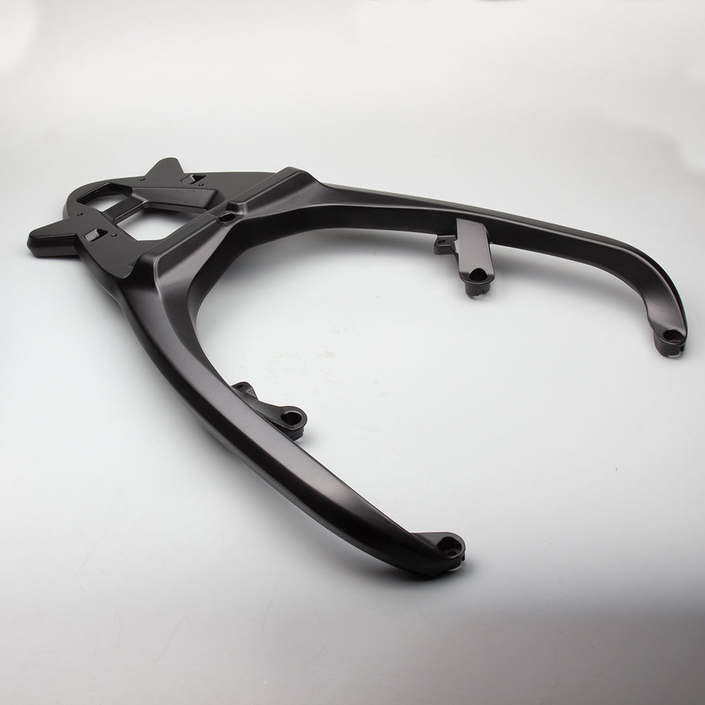A luggage rack on a motorcycle is a framework attached to the rear of the bike to carry additional cargo or luggage. It provides a stable and secure platform for fastening bags, boxes, or other items, making it ideal for long trips or commuting.
