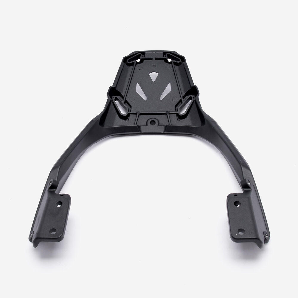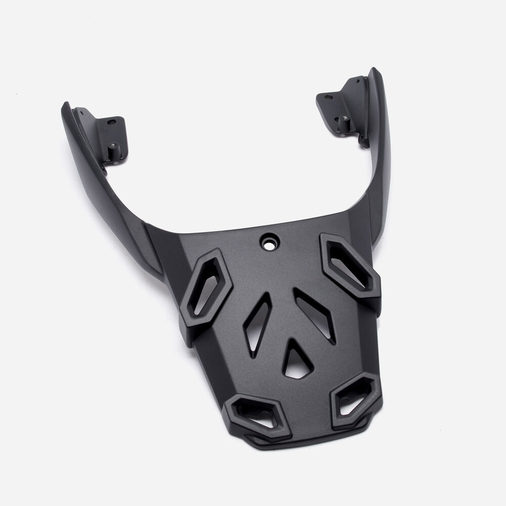 A luggage rack on a motorcycle is a framework attached to the rear of the bike to carry additional cargo or luggage. It provides a stable and secure platform for fastening bags, boxes, or other items, making it ideal for long trips or commuting.
