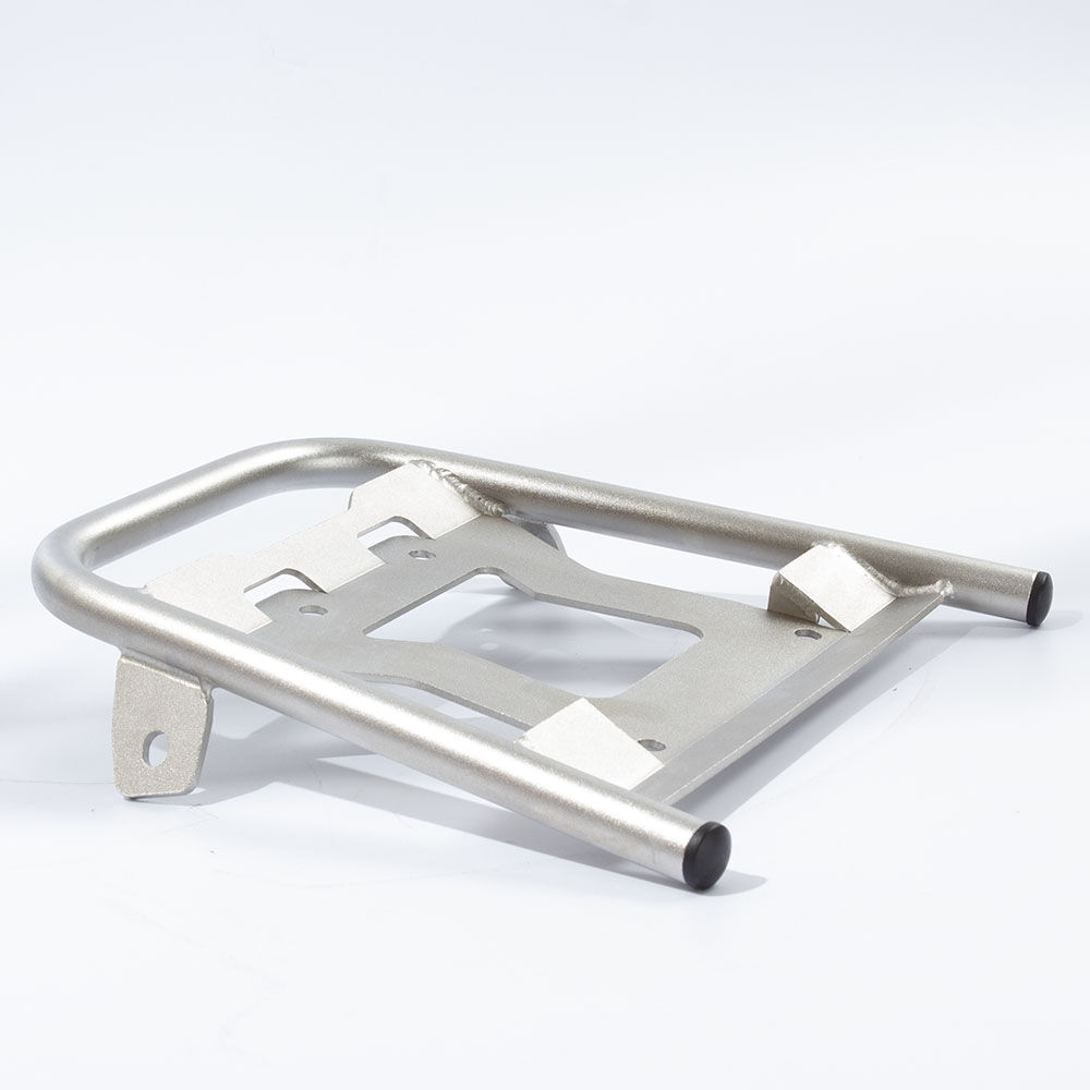A luggage rack on a motorcycle is a framework attached to the rear of the bike to carry additional cargo or luggage. It provides a stable and secure platform for fastening bags, boxes, or other items, making it ideal for long trips or commuting.