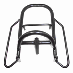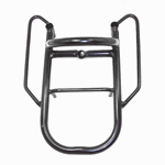 A luggage rack on a motorcycle is a framework attached to the rear of the bike to carry additional cargo or luggage. It provides a stable and secure platform for fastening bags, boxes, or other items, making it ideal for long trips or commuting.