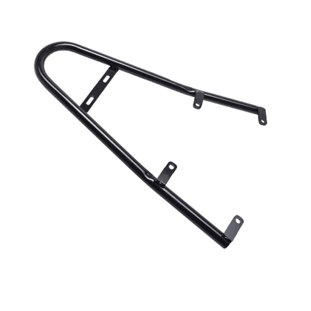 A luggage rack on a motorcycle is a framework attached to the rear of the bike to carry additional cargo or luggage. It provides a stable and secure platform for fastening bags, boxes, or other items, making it ideal for long trips or commuting.