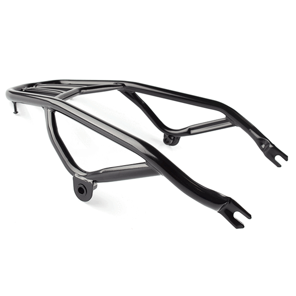A luggage rack on a motorcycle is a framework attached to the rear of the bike to carry additional cargo or luggage. It provides a stable and secure platform for fastening bags, boxes, or other items, making it ideal for long trips or commuting.