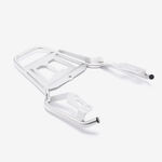 A luggage rack on a motorcycle is a framework attached to the rear of the bike to carry additional cargo or luggage. It provides a stable and secure platform for fastening bags, boxes, or other items, making it ideal for long trips or commuting.