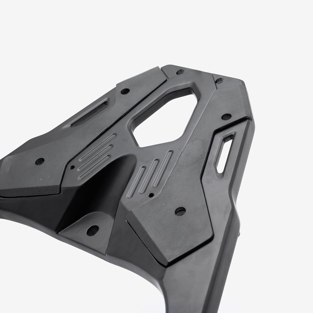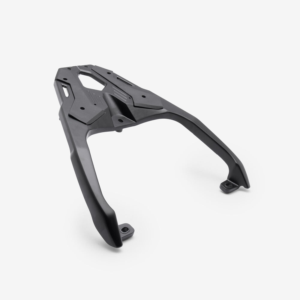 A luggage rack on a motorcycle is a framework attached to the rear of the bike to carry additional cargo or luggage. It provides a stable and secure platform for fastening bags, boxes, or other items, making it ideal for long trips or commuting.