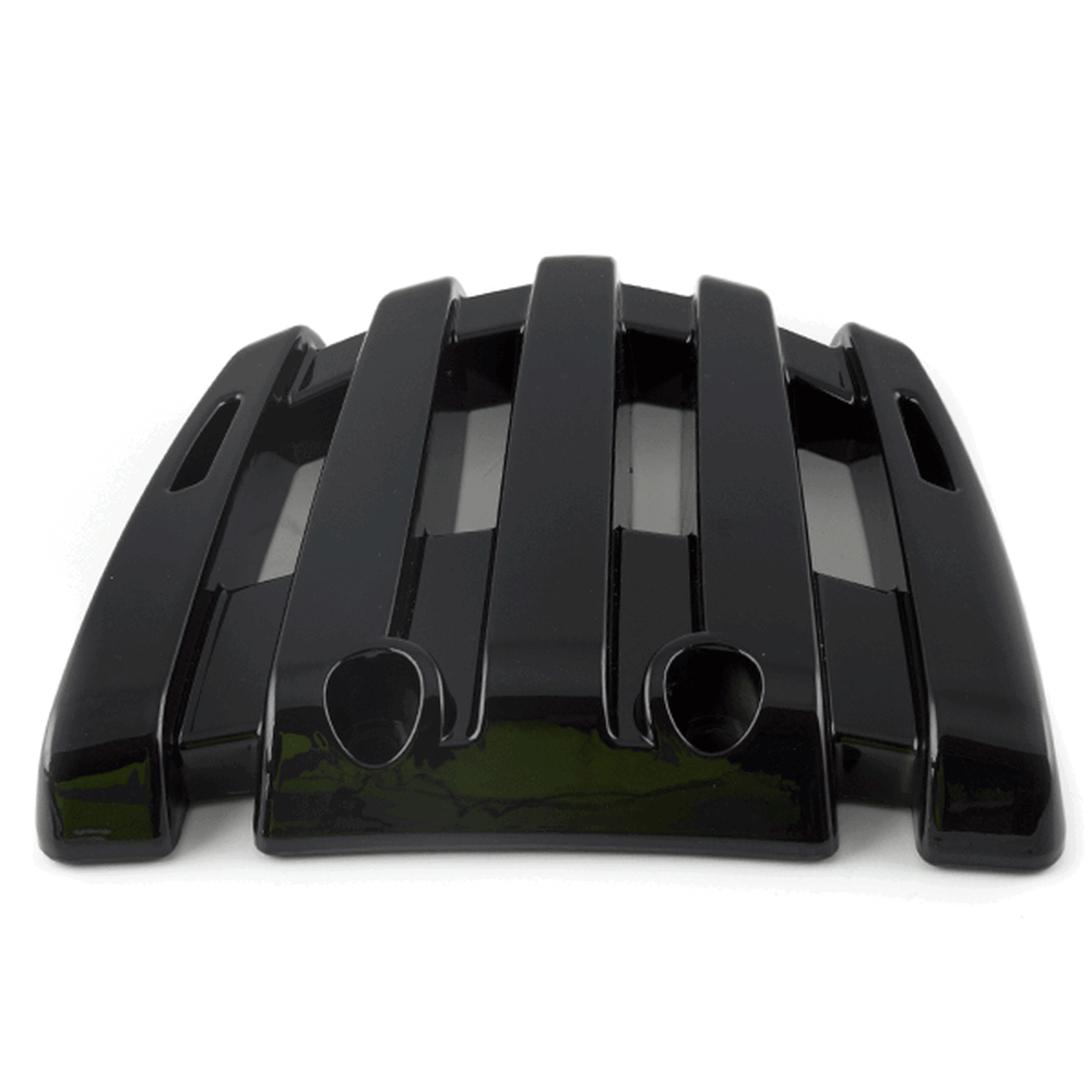 A Luggage rack cover on a motorcycle is a protective covering that fits over the luggage rack to shield it from the elements and provide a non-slip surface. It helps protect the rack from scratches, weather damage, and wear while also keeping the luggage secure during transit.