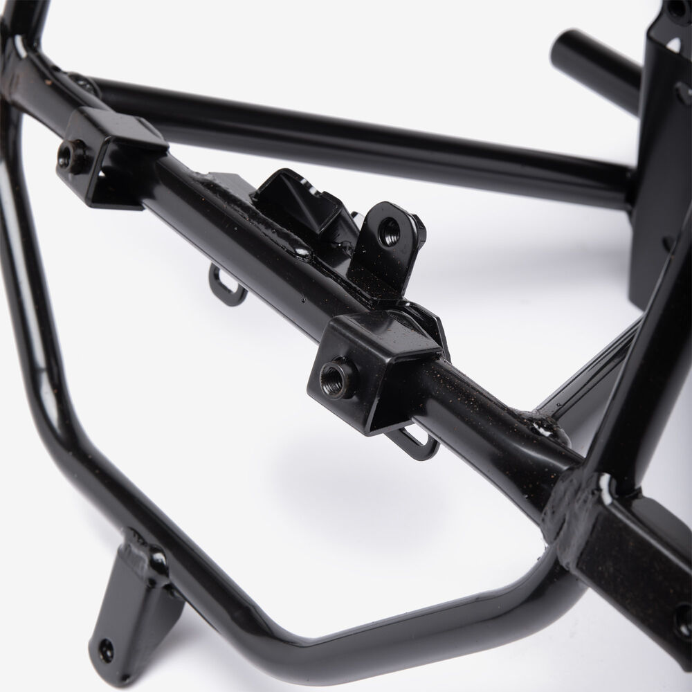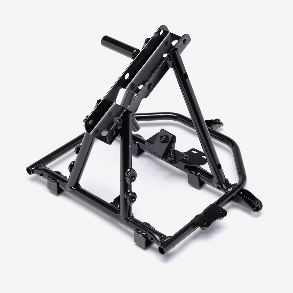 The lighting bracket on a motorcycle is a mounting component that secures lighting fixtures, such as headlights or auxiliary lights, to the bike. It ensures the lights are firmly positioned and properly aligned for optimal illumination.