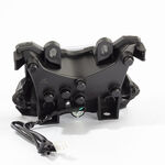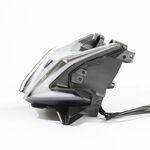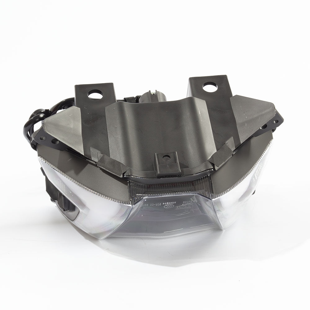 The headlight on a motorcycle is a primary lighting component mounted at the front of the bike to illuminate the road ahead. It enhances visibility during low-light conditions and improves safety by allowing the rider to see and be seen by others. Headlights typically use halogen, HID, or LED technology and are designed to withstand vibrations and weather conditions.