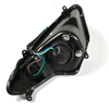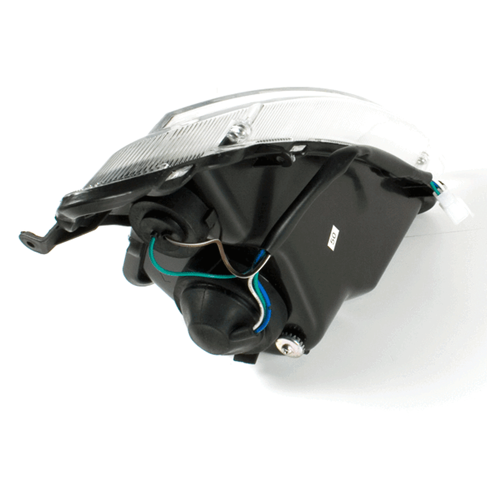 The headlight on a motorcycle is a primary lighting component mounted at the front of the bike to illuminate the road ahead. It enhances visibility during low-light conditions and improves safety by allowing the rider to see and be seen by others. Headlights typically use halogen, HID, or LED technology and are designed to withstand vibrations and weather conditions.