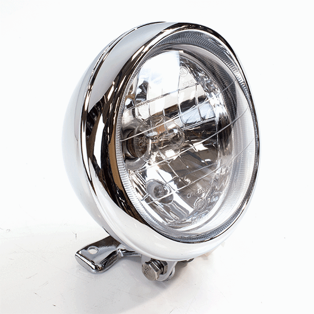 The headlight on a motorcycle is a primary lighting component mounted at the front of the bike to illuminate the road ahead. It enhances visibility during low-light conditions and improves safety by allowing the rider to see and be seen by others. Headlights typically use halogen, HID, or LED technology and are designed to withstand vibrations and weather conditions.