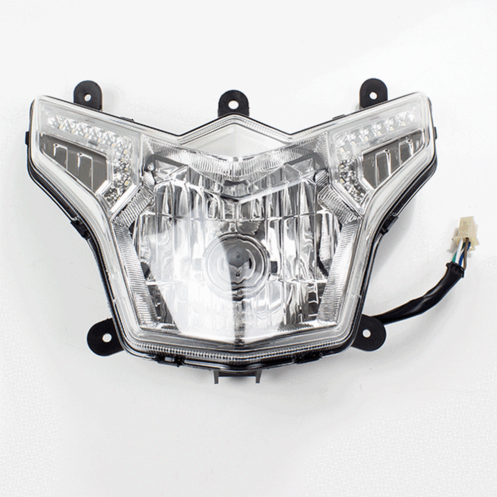 The headlight on a motorcycle is a primary lighting component mounted at the front of the bike to illuminate the road ahead. It enhances visibility during low-light conditions and improves safety by allowing the rider to see and be seen by others. Headlights typically use halogen, HID, or LED technology and are designed to withstand vibrations and weather conditions.
