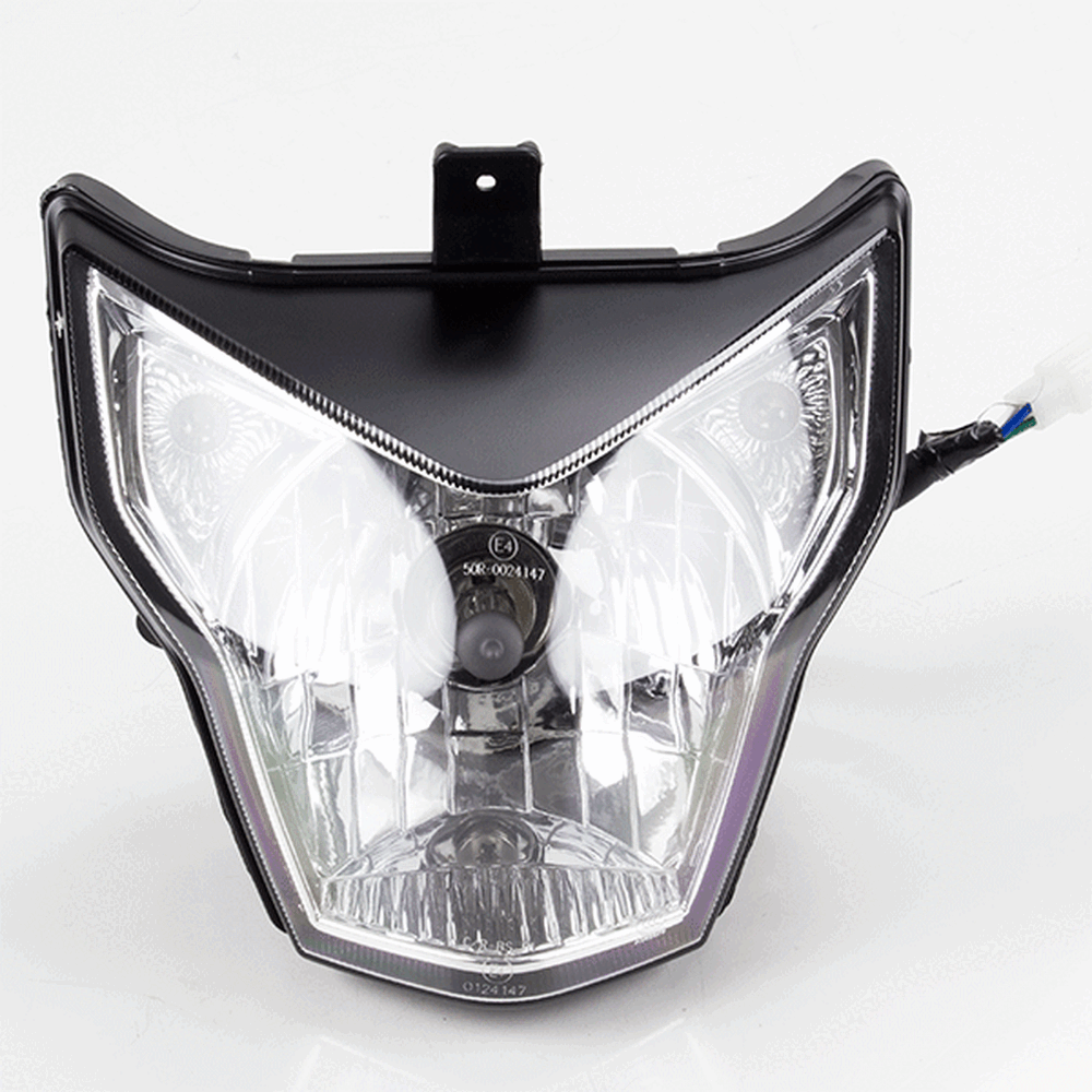 The headlight on a motorcycle is a primary lighting component mounted at the front of the bike to illuminate the road ahead. It enhances visibility during low-light conditions and improves safety by allowing the rider to see and be seen by others. Headlights typically use halogen, HID, or LED technology and are designed to withstand vibrations and weather conditions.