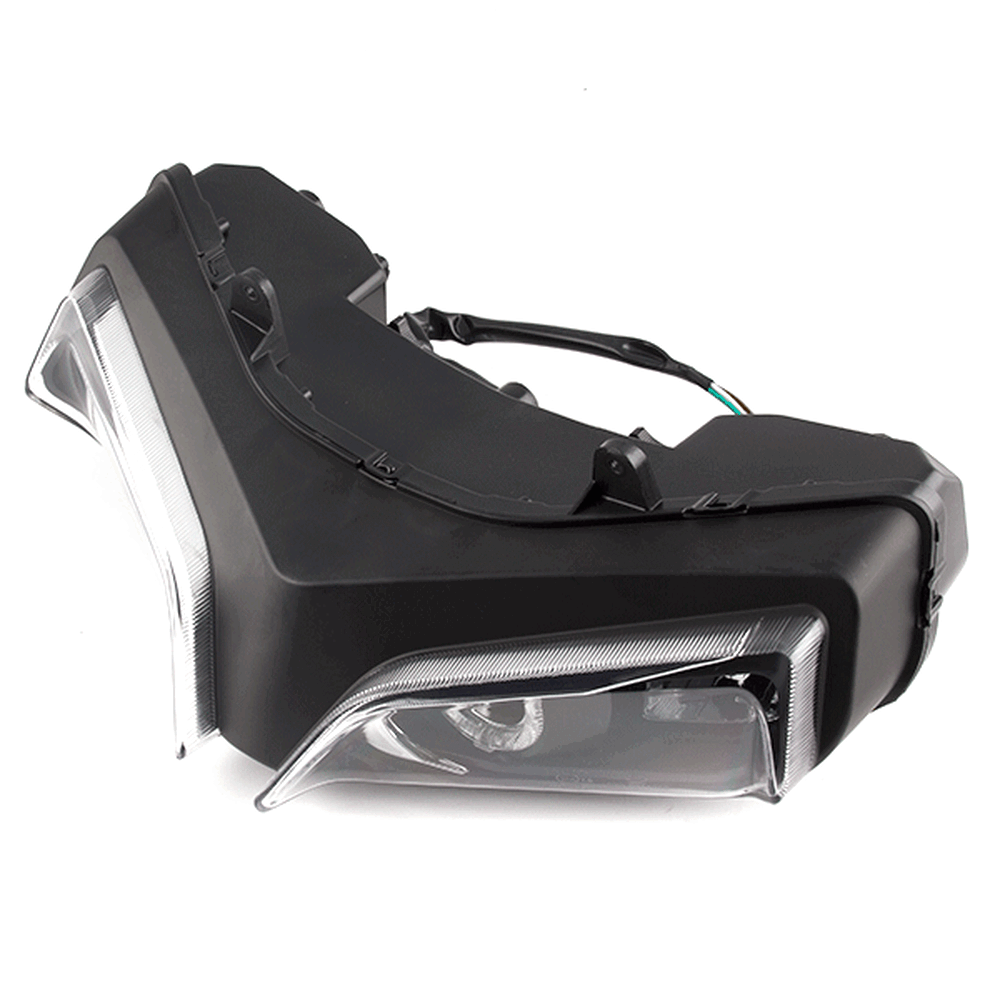 The headlight on a motorcycle is a primary lighting component mounted at the front of the bike to illuminate the road ahead. It enhances visibility during low-light conditions and improves safety by allowing the rider to see and be seen by others. Headlights typically use halogen, HID, or LED technology and are designed to withstand vibrations and weather conditions.