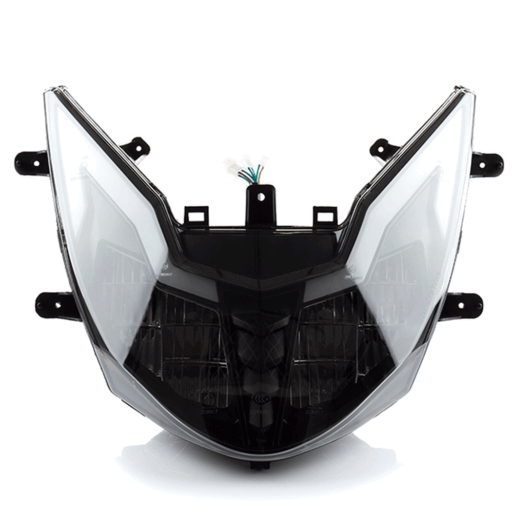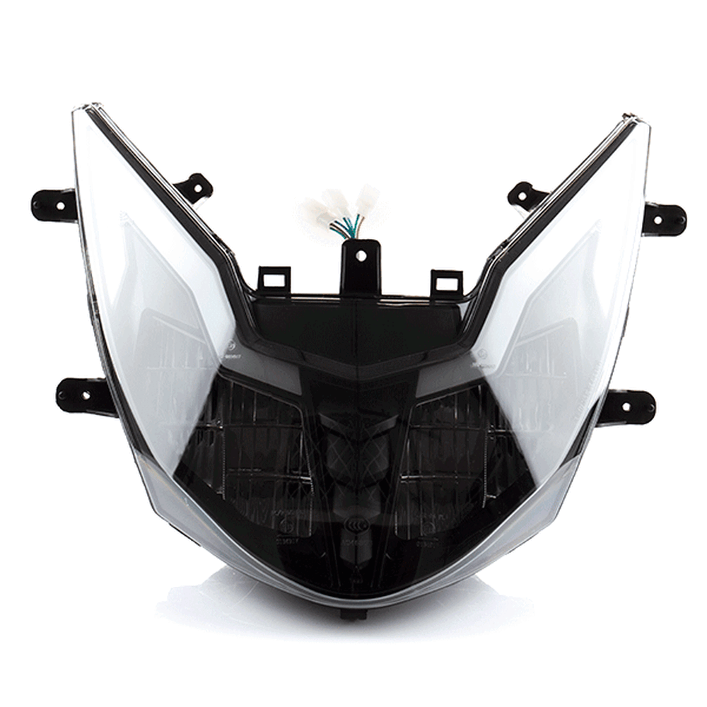 The headlight on a motorcycle is a primary lighting component mounted at the front of the bike to illuminate the road ahead. It enhances visibility during low-light conditions and improves safety by allowing the rider to see and be seen by others. Headlights typically use halogen, HID, or LED technology and are designed to withstand vibrations and weather conditions.