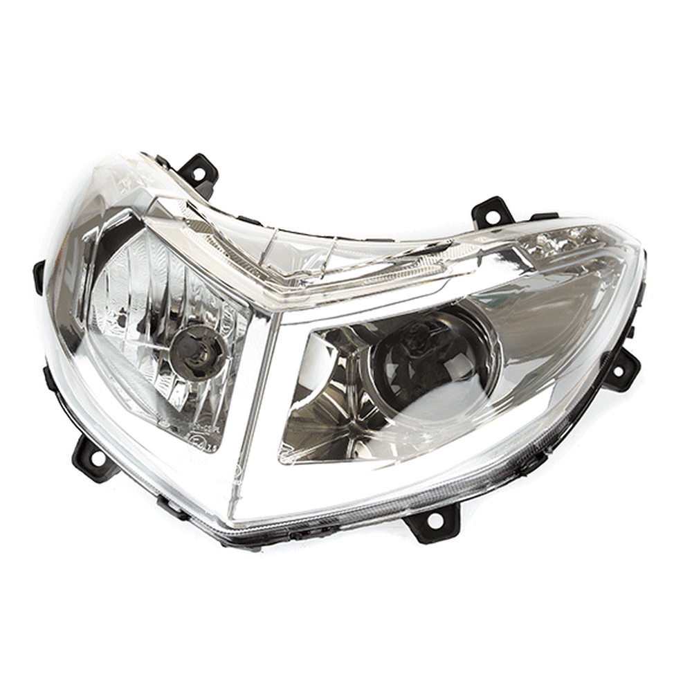 The headlight on a motorcycle is a primary lighting component mounted at the front of the bike to illuminate the road ahead. It enhances visibility during low-light conditions and improves safety by allowing the rider to see and be seen by others. Headlights typically use halogen, HID, or LED technology and are designed to withstand vibrations and weather conditions.