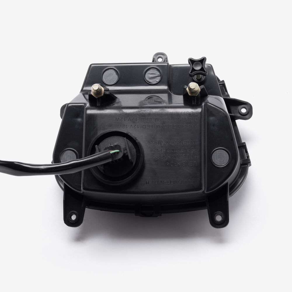 The headlight on a motorcycle is a primary lighting component mounted at the front of the bike to illuminate the road ahead. It enhances visibility during low-light conditions and improves safety by allowing the rider to see and be seen by others. Headlights typically use halogen, HID, or LED technology and are designed to withstand vibrations and weather conditions.