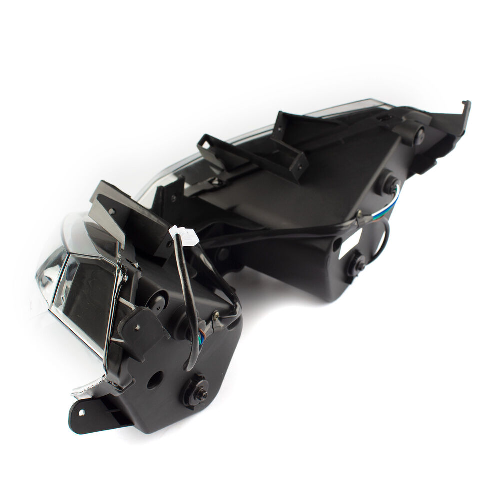 The headlight on a motorcycle is a primary lighting component mounted at the front of the bike to illuminate the road ahead. It enhances visibility during low-light conditions and improves safety by allowing the rider to see and be seen by others. Headlights typically use halogen, HID, or LED technology and are designed to withstand vibrations and weather conditions.