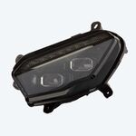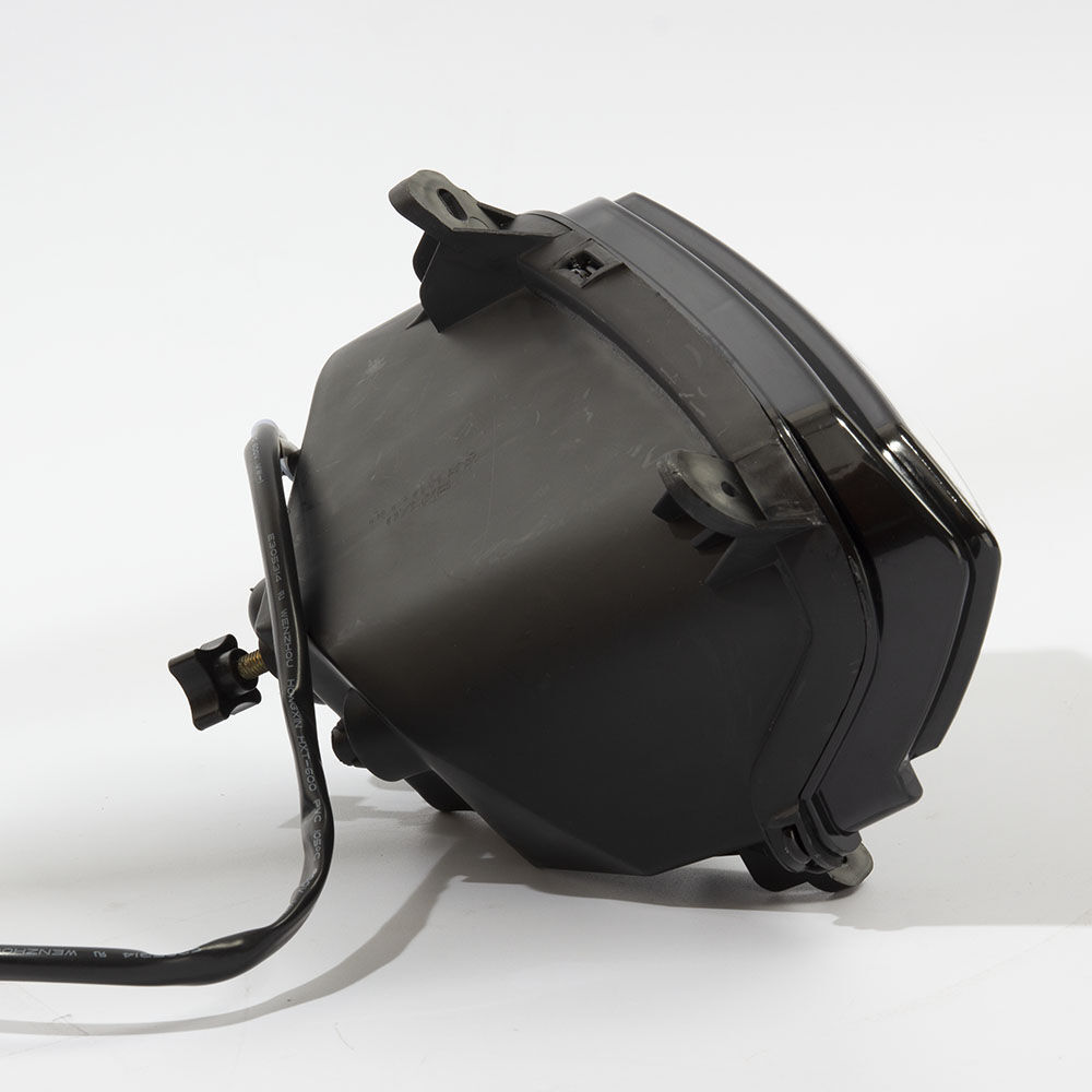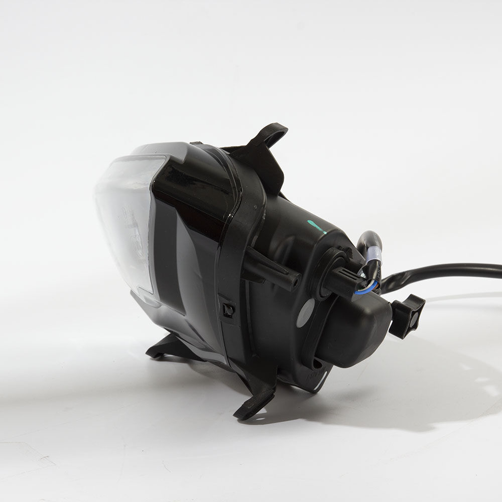 The headlight on a motorcycle is a primary lighting component mounted at the front of the bike to illuminate the road ahead. It enhances visibility during low-light conditions and improves safety by allowing the rider to see and be seen by others. Headlights typically use halogen, HID, or LED technology and are designed to withstand vibrations and weather conditions.