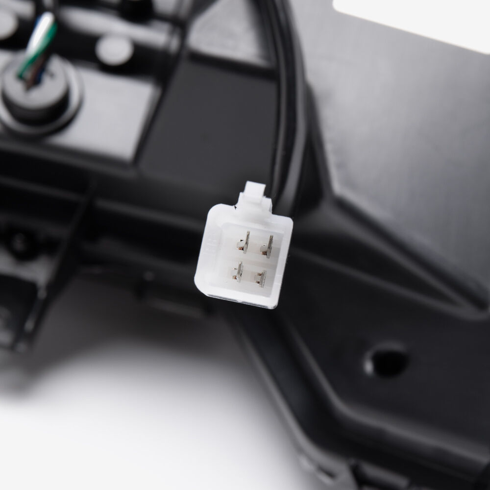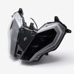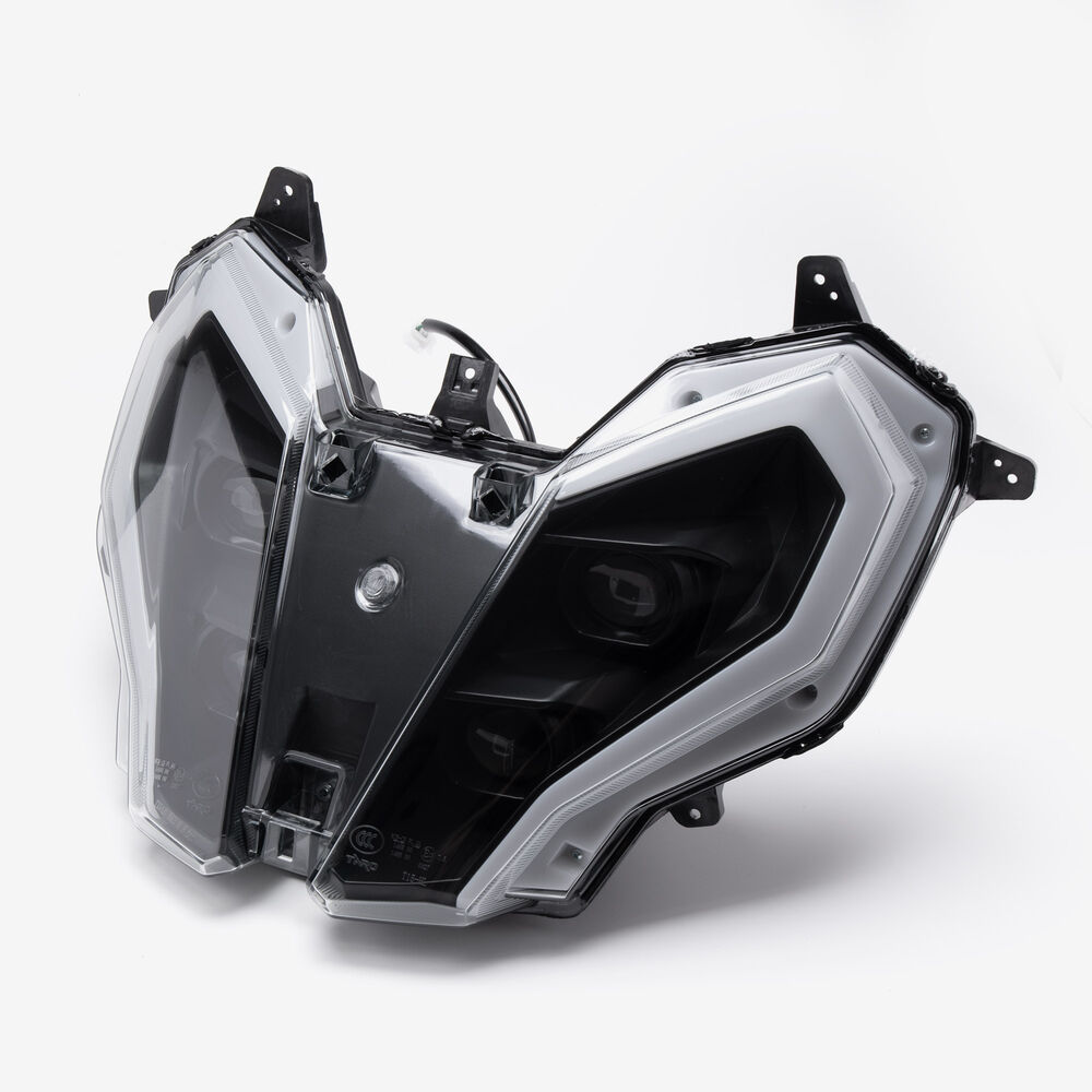 The headlight on a motorcycle is a primary lighting component mounted at the front of the bike to illuminate the road ahead. It enhances visibility during low-light conditions and improves safety by allowing the rider to see and be seen by others. Headlights typically use halogen, HID, or LED technology and are designed to withstand vibrations and weather conditions.