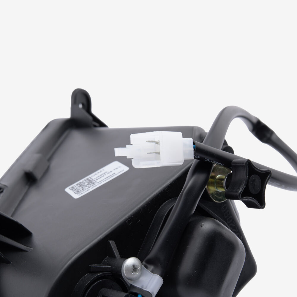 The headlight on a motorcycle is a primary lighting component mounted at the front of the bike to illuminate the road ahead. It enhances visibility during low-light conditions and improves safety by allowing the rider to see and be seen by others. Headlights typically use halogen, HID, or LED technology and are designed to withstand vibrations and weather conditions.