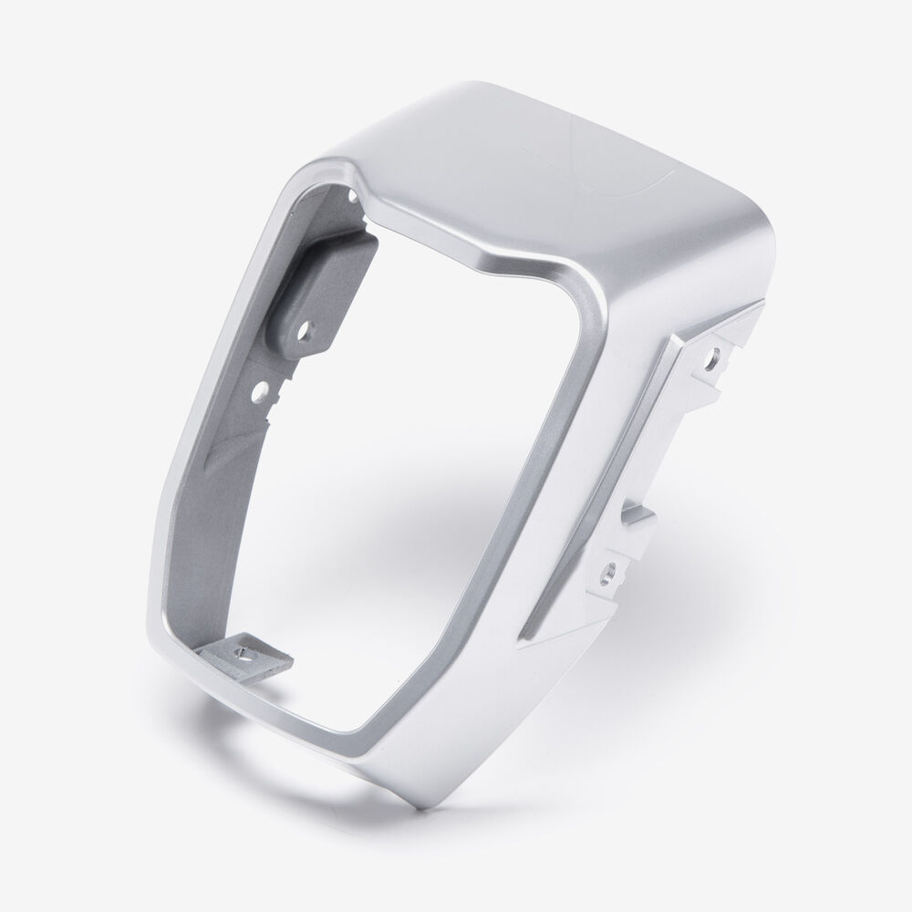 The headlight cover on a motorcycle is a transparent shield that protects the headlight bulb from debris, dust, and moisture.
