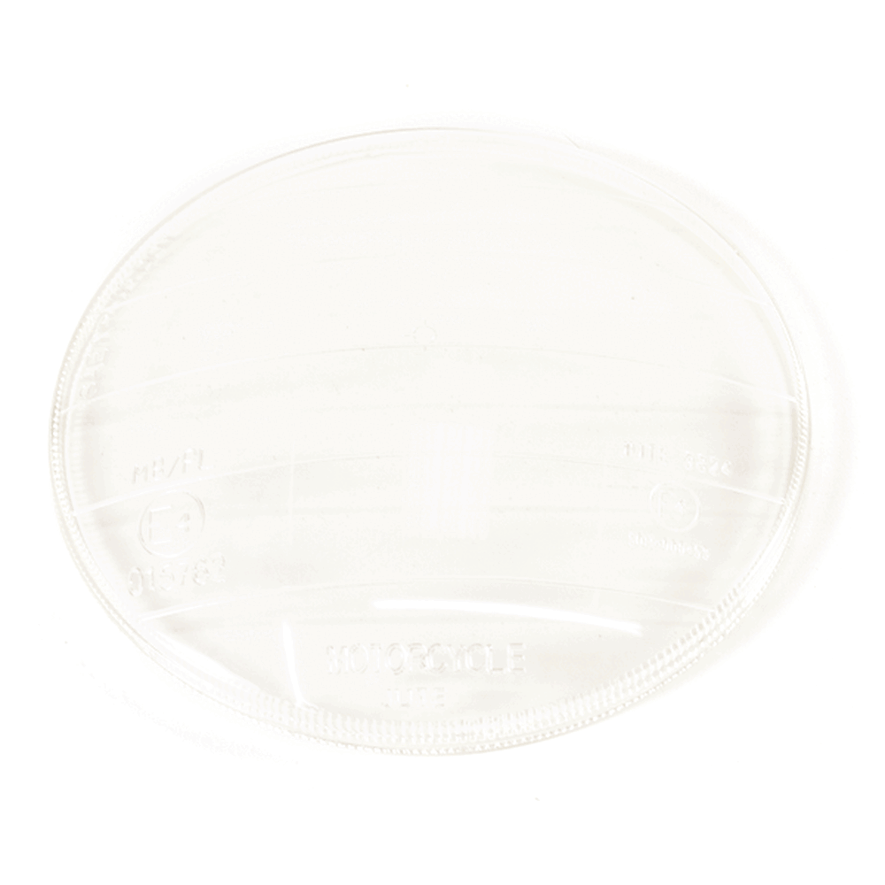 The headlight cover lens on a motorcycle is a transparent shield that protects the headlight bulb from debris, dust, and moisture. It ensures clear light transmission while shielding the headlight assembly.
