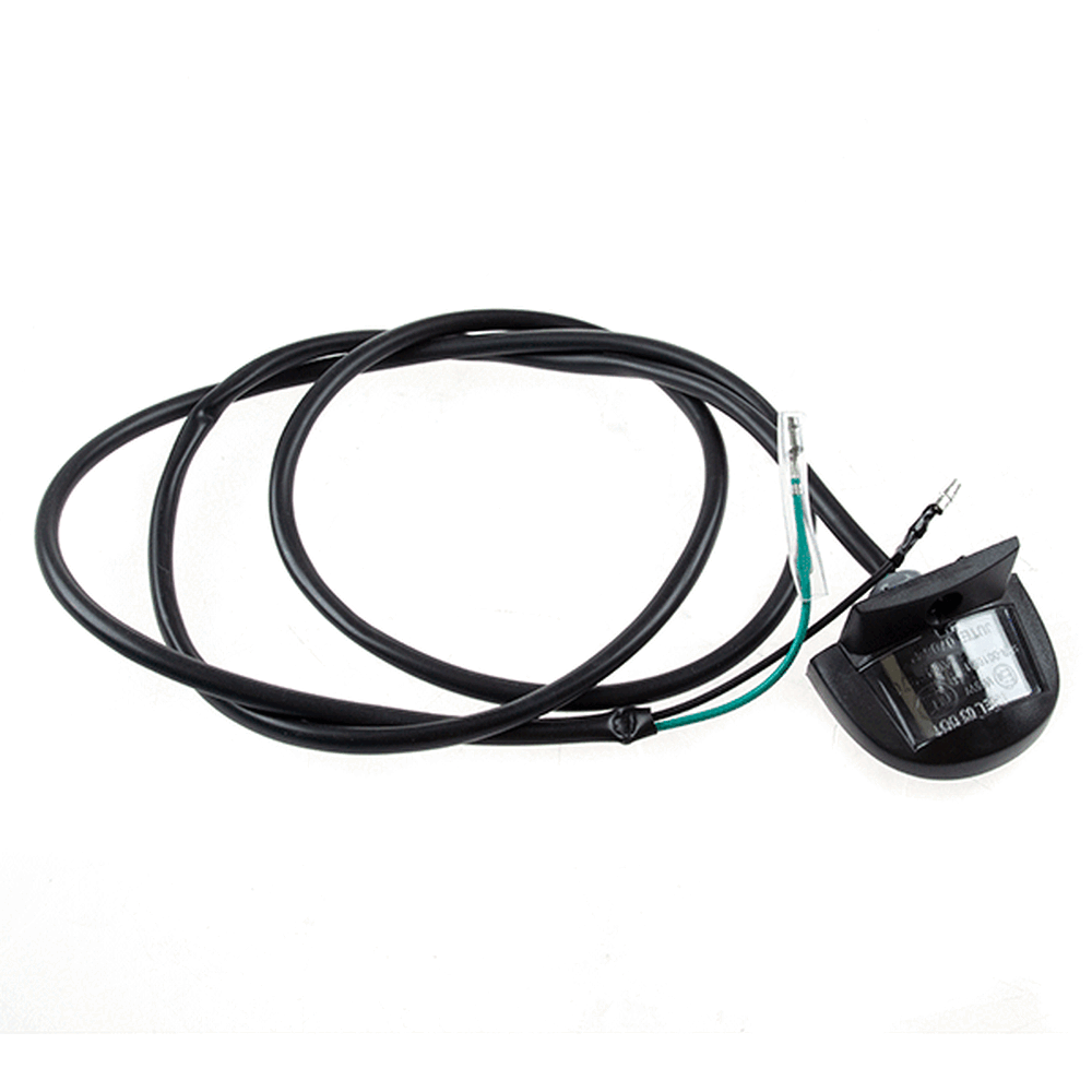 The number plate light on a motorcycle is a small light mounted above or near the license plate to illuminate it. This ensures the plate is visible at night and in low-light conditions, helping comply with legal requirements and enhancing safety.