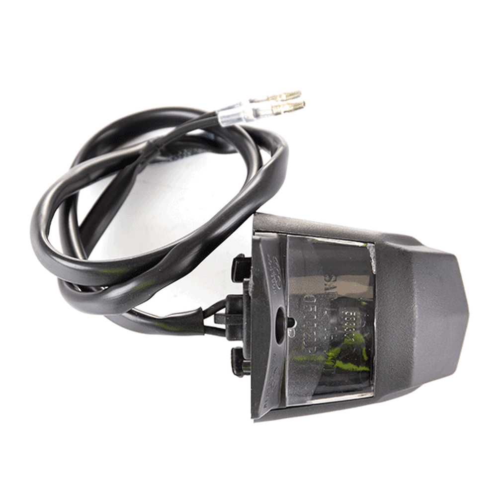 The number plate light on a motorcycle is a small light mounted above or near the license plate to illuminate it. This ensures the plate is visible at night and in low-light conditions, helping comply with legal requirements and enhancing safety.