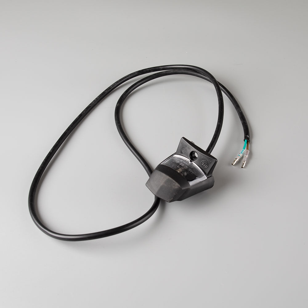 The number plate light on a motorcycle is a small light mounted above or near the license plate to illuminate it. This ensures the plate is visible at night and in low-light conditions, helping comply with legal requirements and enhancing safety.