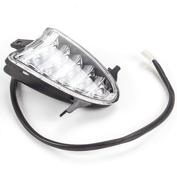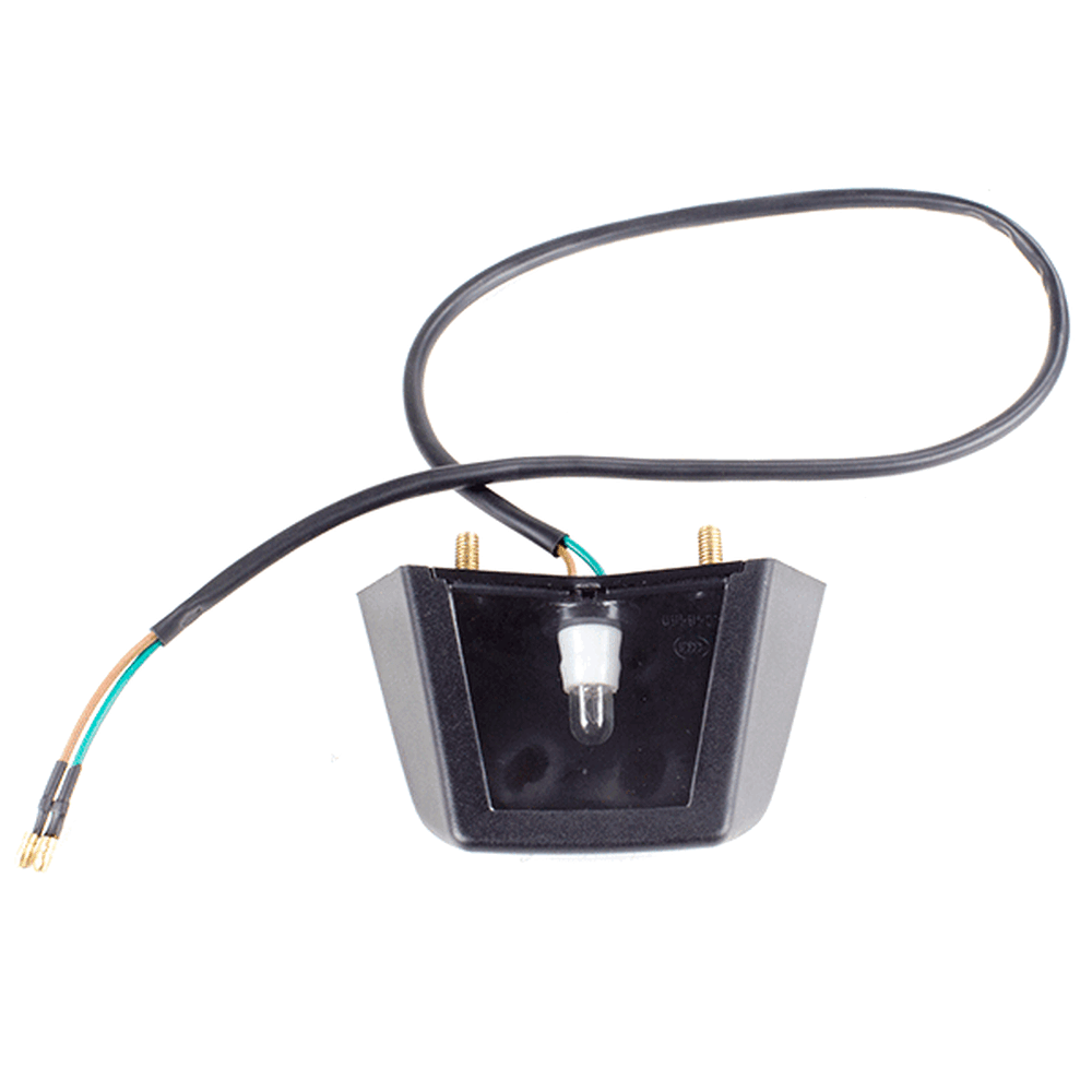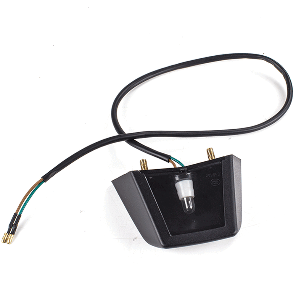 The number plate light on a motorcycle is a small light mounted above or near the license plate to illuminate it. This ensures the plate is visible at night and in low-light conditions, helping comply with legal requirements and enhancing safety.