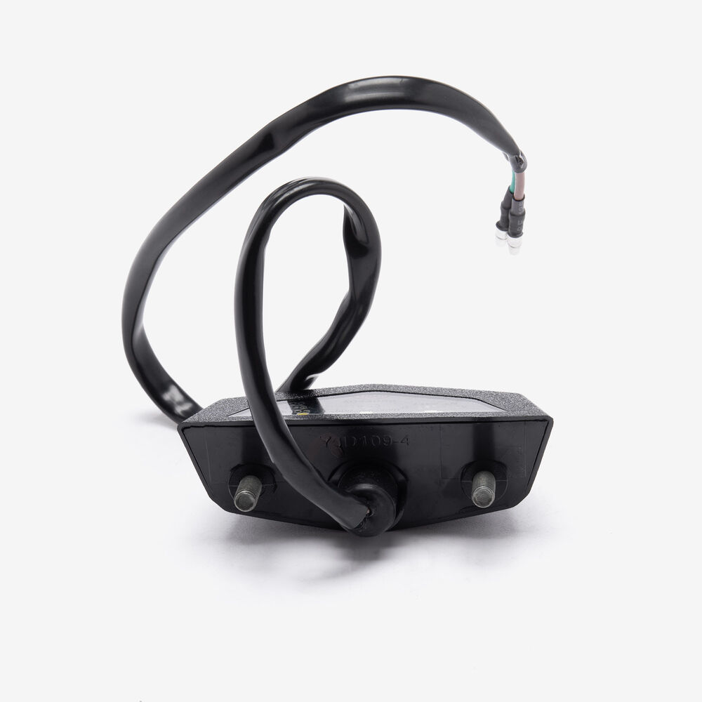 The number plate light on a motorcycle is a small light mounted above or near the license plate to illuminate it. This ensures the plate is visible at night and in low-light conditions, helping comply with legal requirements and enhancing safety.