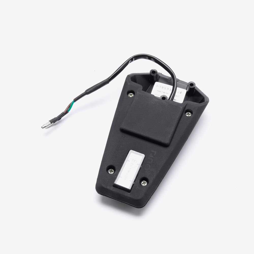 The number plate light on a motorcycle is a small light mounted above or near the license plate to illuminate it. This ensures the plate is visible at night and in low-light conditions, helping comply with legal requirements and enhancing safety.