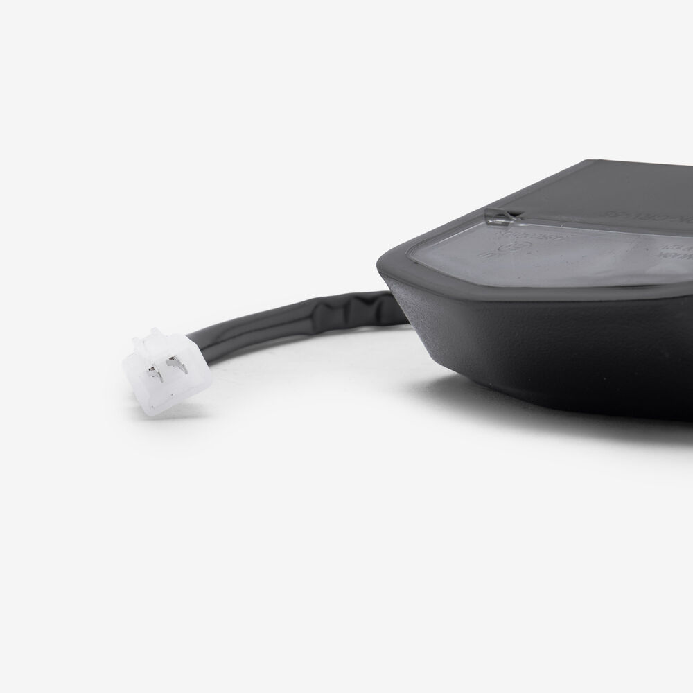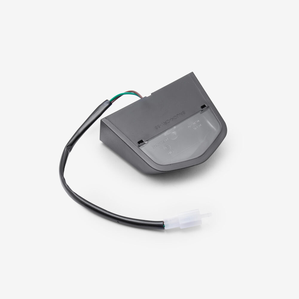 The number plate light on a motorcycle is a small light mounted above or near the license plate to illuminate it. This ensures the plate is visible at night and in low-light conditions, helping comply with legal requirements and enhancing safety.