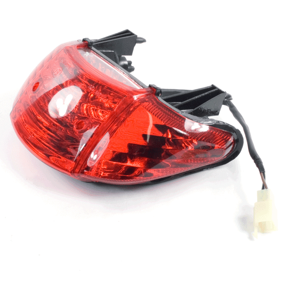 The tail light on a motorcycle is a rear-mounted light that signals the presence and braking actions of the rider to other drivers. It enhances visibility and safety by illuminating the rear of the motorcycle. Typically featuring LED or bulb lighting, the tail light is designed for durability and effective illumination in various riding conditions.