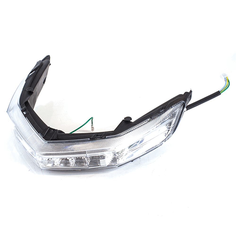 The tail light on a motorcycle is a rear-mounted light that signals the presence and braking actions of the rider to other drivers. It enhances visibility and safety by illuminating the rear of the motorcycle. Typically featuring LED or bulb lighting, the tail light is designed for durability and effective illumination in various riding conditions.