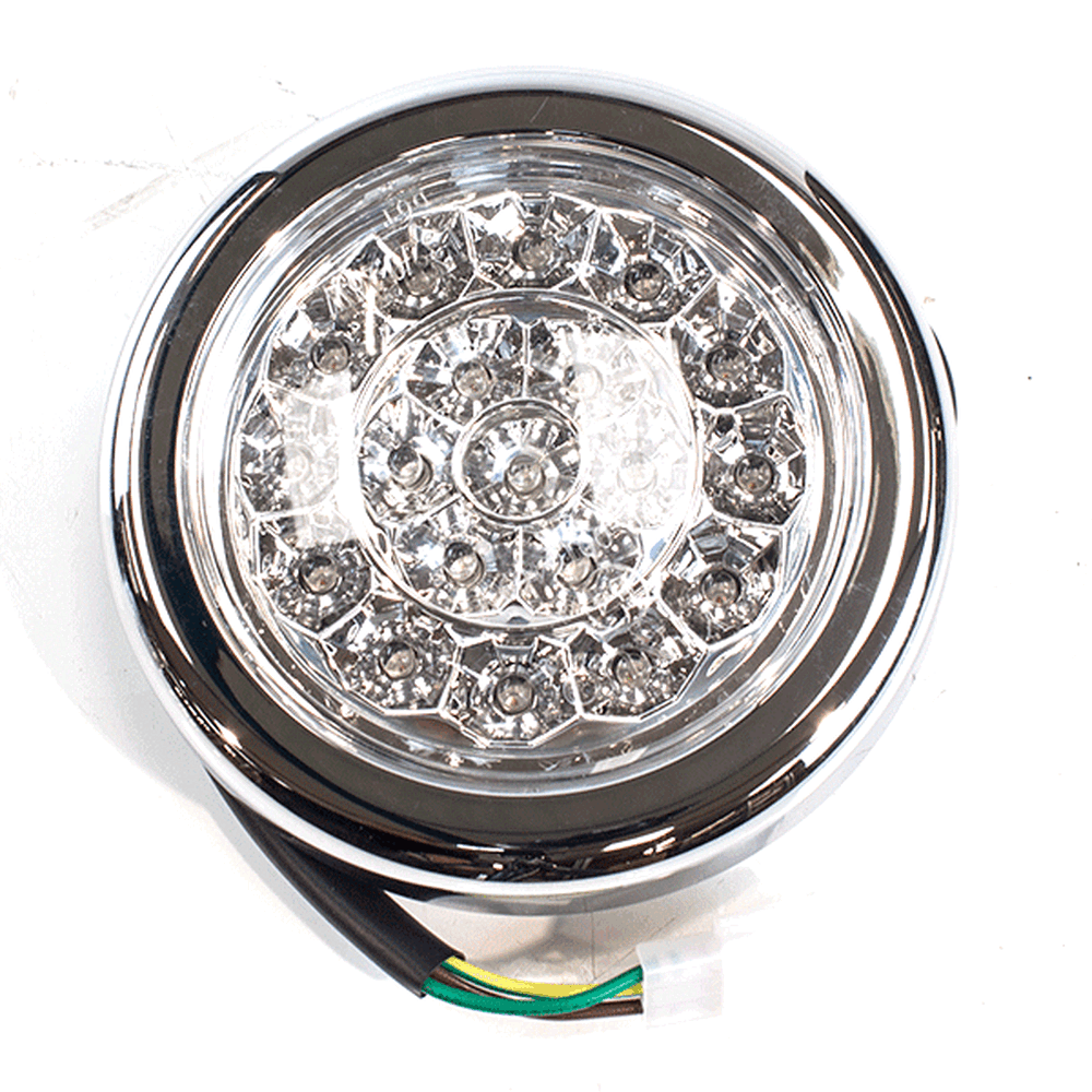 The tail light on a motorcycle is a rear-mounted light that signals the presence and braking actions of the rider to other drivers. It enhances visibility and safety by illuminating the rear of the motorcycle. Typically featuring LED or bulb lighting, the tail light is designed for durability and effective illumination in various riding conditions.