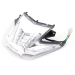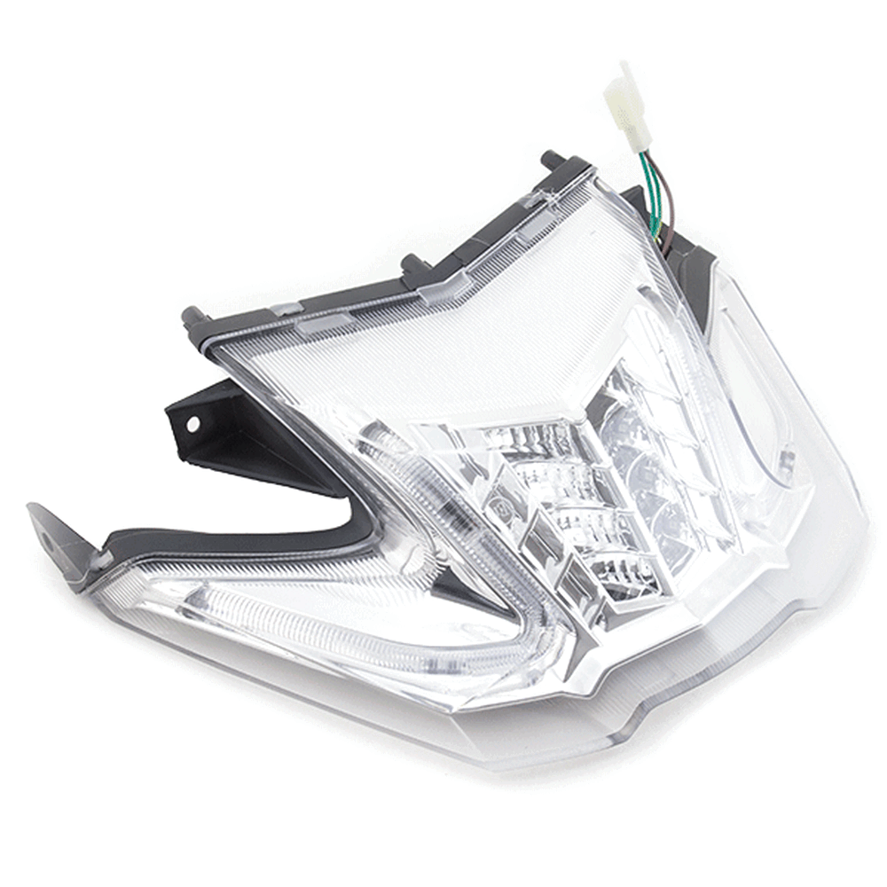 The tail light on a motorcycle is a rear-mounted light that signals the presence and braking actions of the rider to other drivers. It enhances visibility and safety by illuminating the rear of the motorcycle. Typically featuring LED or bulb lighting, the tail light is designed for durability and effective illumination in various riding conditions.