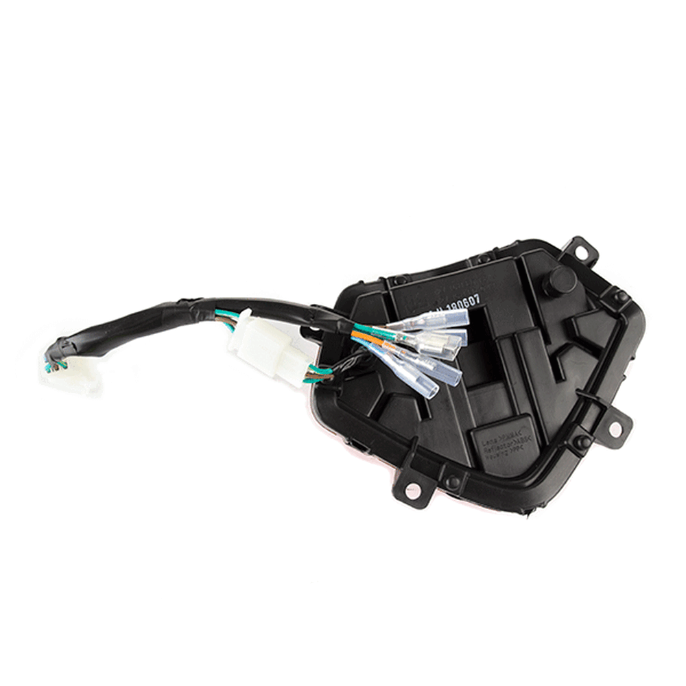 The tail light on a motorcycle is a rear-mounted light that signals the presence and braking actions of the rider to other drivers. It enhances visibility and safety by illuminating the rear of the motorcycle. Typically featuring LED or bulb lighting, the tail light is designed for durability and effective illumination in various riding conditions.