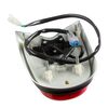 The tail light on a motorcycle is a rear-mounted light that signals the presence and braking actions of the rider to other drivers. It enhances visibility and safety by illuminating the rear of the motorcycle. Typically featuring LED or bulb lighting, the tail light is designed for durability and effective illumination in various riding conditions.